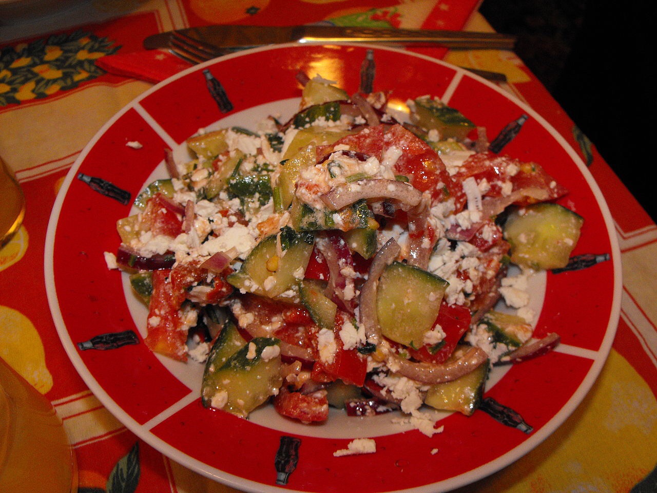 Shopska (Benim favorim. Salatalık , domates, közlenmiş biber, soğan, rendelenmiş beyaz peynir ile yapılıyor. Bulgaristan'ın ve hatta balkanların meşhur salatası) Snezhanka (Yoğurda salatalık, sarımsak, yağ, dereotu karıştırılarak yapılan bir tür salata) Fnuyki (Tatlı olarak favorim. Rulo şeklindeki hamurun içine puding koyuyorlar ve üstünde ceviz parçaları) İçeçek olarak ülke genelinde en yaygın içki Rakia (rakı), fakat Bulgar birası Stolichno da tercih ediliyor elbette. Alkolsüz içecek isterseniz kahve ve meyve suları dışında yine tanıdık tatlar ayran ve boza bulmanız mümkün.