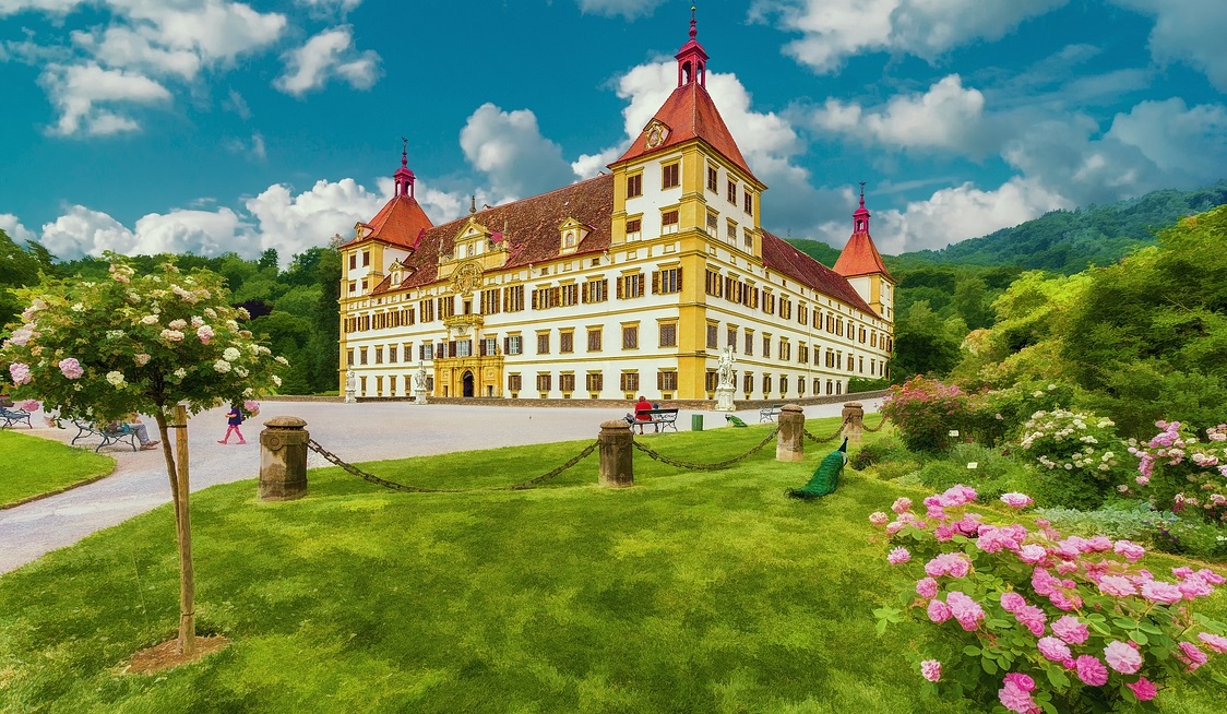 Steiermark'taki en önemli Barok saray kompleksi olan Schloss Eggenberg (Eggenberg Şatosu), çevresindeki parkta yer alan Joanneum Müzesi, muhafaza edilmiş aksesuarları, geniş doğal bahçeleri ve ek koleksiyonları ile Avusturya'nın en değerli kültür varlıklarından biri. Steiermark'ta dönemin ihtişamını gözler önüne seren yapı, 2010 yılından bu yana Dünya Mirası Alanları arasında yer alan Graz Tarihi Eski Kent alanı ile birlikte UNESCO Dünya Mirası Listesinde bulunuyor. Dört bir yanında astrolojik sembolizmin bulunduğu sarayda 365 pencere, 52 kapı, her katta 31 oda ve dört köşe kulesi bulunuyor. Orijinal duvar halıları ve mobilyalarla dolu 24 görkemli devlet odasını gezmeyi ihmal etmeyin.
