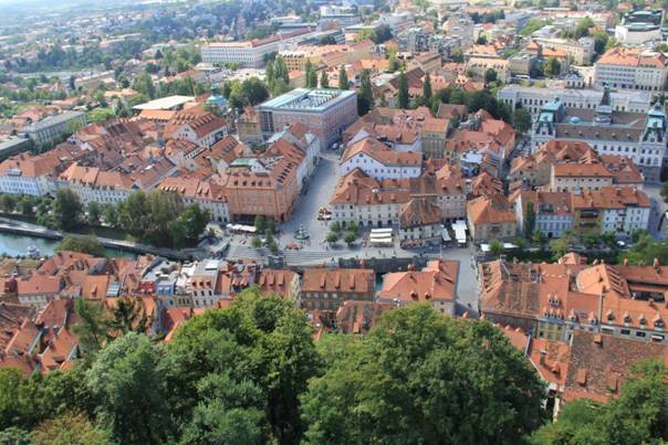 Lubliyana Kalesi: Avrupa Rüyası ile gezerken eğer vaktim varsa mutlaka şehirleri tepeden izleyebileceğim bir yerlere çıktım. Çünkü böyle turlarda zaman kısıtlı olunca belli yerleri görebiliyoruz sadece ama en azından tepeden şehri panoramik görmek biraz olsun fikir veriyor. Kaleye çıkmak için finiküler var (4€) fakat ben yürümeyi tercih ettim. Çıkınca iyi ki de gelmişim dedim çünkü kaleden şehir manzarası çok güzel görünüyor.